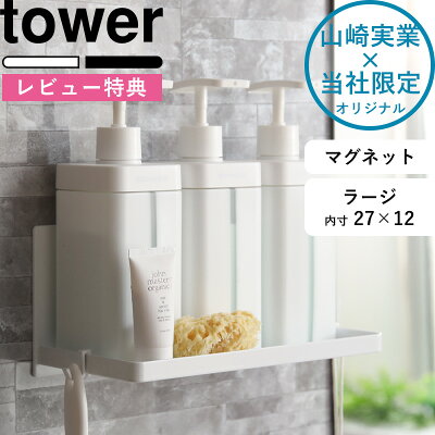 tower 「 マグネットバスルームラック タワー ラージ」浴室棚 バスラック 棚 フック 収納 お風呂 浴室 バスルーム 磁石 マグネット ボトル ディスペンサー ホワイト ブラック 白 黒 シンプル ワイド 大きい おしゃれ 山崎実業 YAMAZAKI 《着後レビューで今治タオル他》